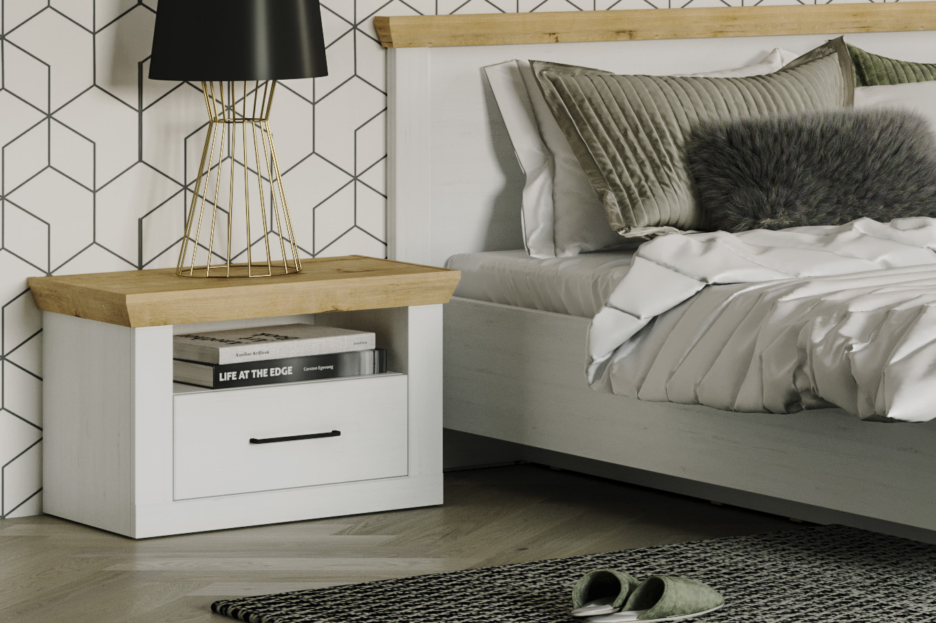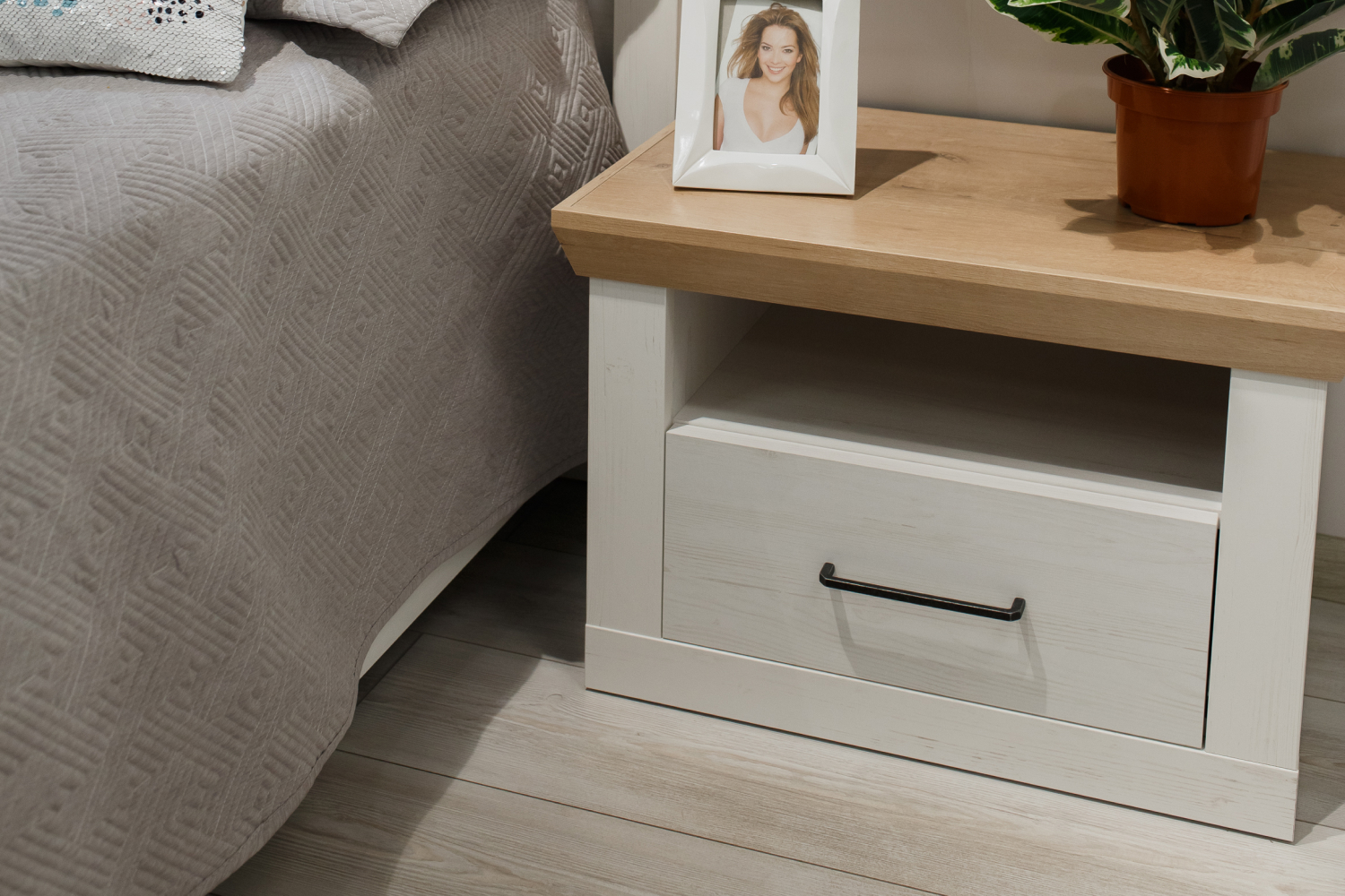 – описание: размер 44.9x65.2x43.7 см, цвет блан-шене, дуб бунратти, назначение для спальни, стиль минимализм, скандинавский, бохо, современный.