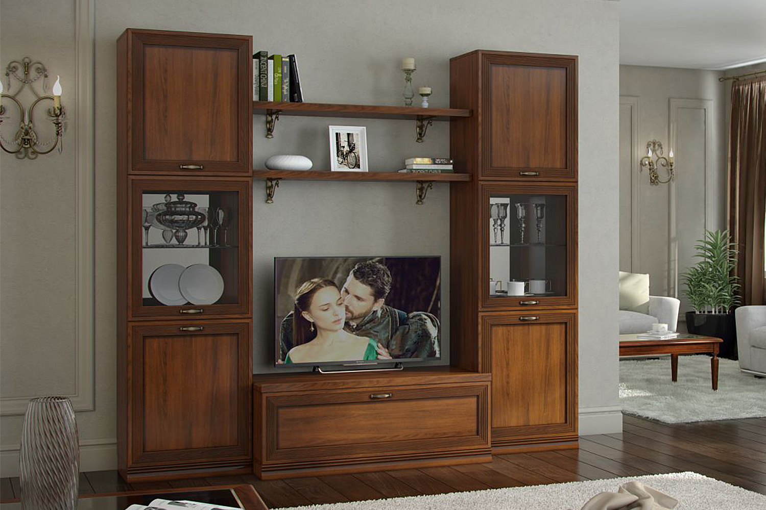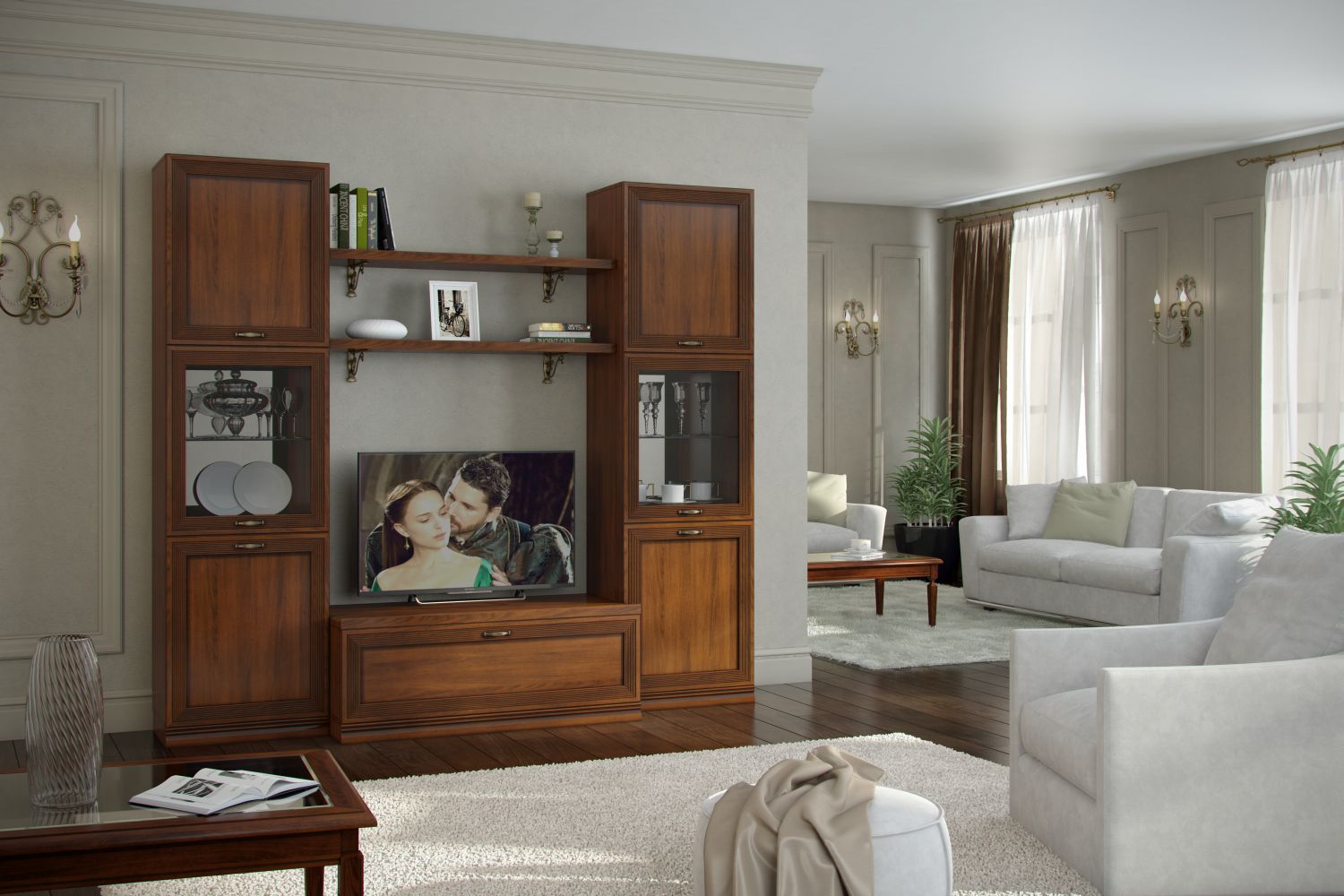 Гостиная Адажио понравится семейным людям, ценителям классики и традиций. Она создана для уютных вечеров с близкими людьми, размеренному чтению любимых книг и просто приятных кинопросмотров за кружкой чая;