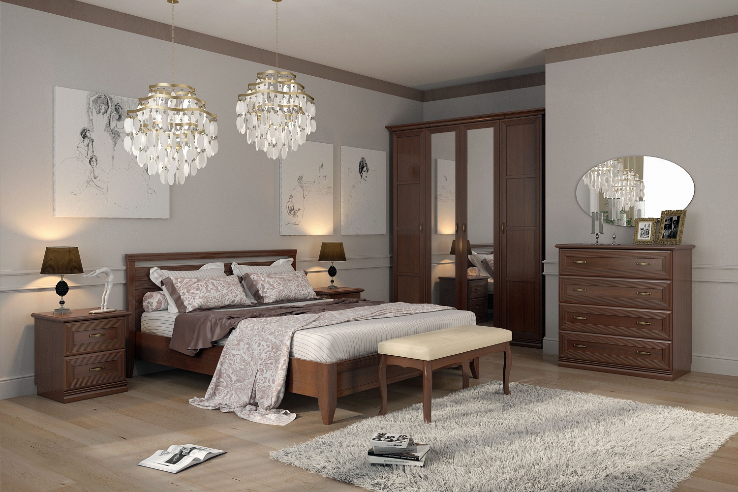 - Адажио — это традиционное прочтение итальянской классики. Мебель из коллекции подойдет не только к классическим интерьерам, но и к спальням в стилях фьюжн, контемпорари и эклектика;