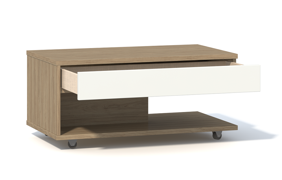 Купить Журнальный стол Анри Д1W с выдвижным ящиком / Швейцарский вяз+Светлый лен в интернет-магазине мебели «Ангстрем»
